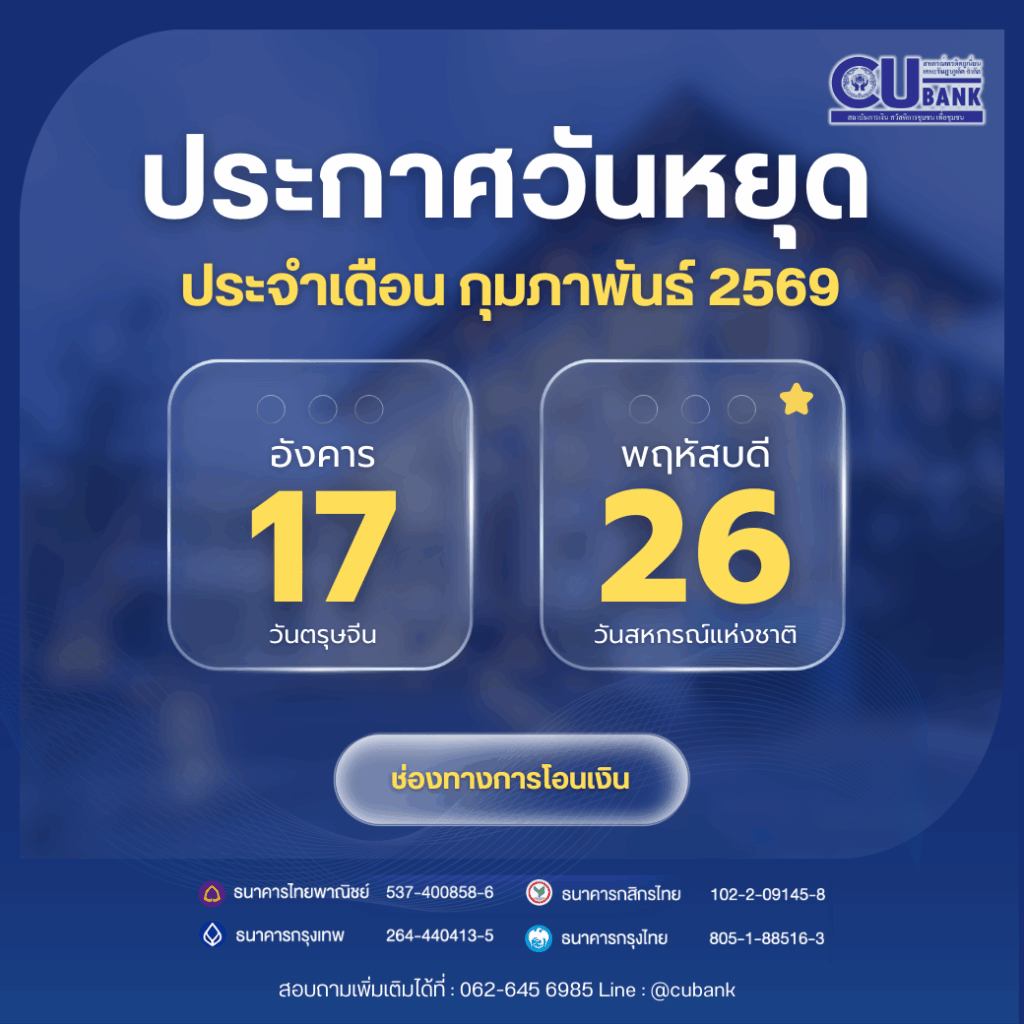 📌วันพฤหัสบดีที่ 26 กุมภาพันธ์ 2569 | วันสหกรณ์แห่งชาติ