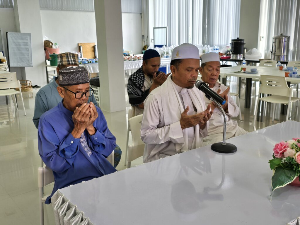 บรรยากาศของพิธีทำบุญ เริ่มด้วยพิธีทางศาสนาอิสลาม โดยมี อิหม่าม จากมัสยิดอัลมาดีนะห์ (สะพานร่วม) จ.ภูเก็ต กล่าวดุอา