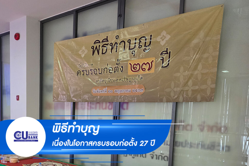 ในวันจันทร์ ที่ 20 พฤษภาคม 2567 สหกรณ์เครดิตยูเนี่ยนเคหะรัษฎาภูเก็ต จำกัด จัดพิธีพิธีทำบุญ เนื่องในโอกาสครบรอบก่อตั้ง 27 ปี